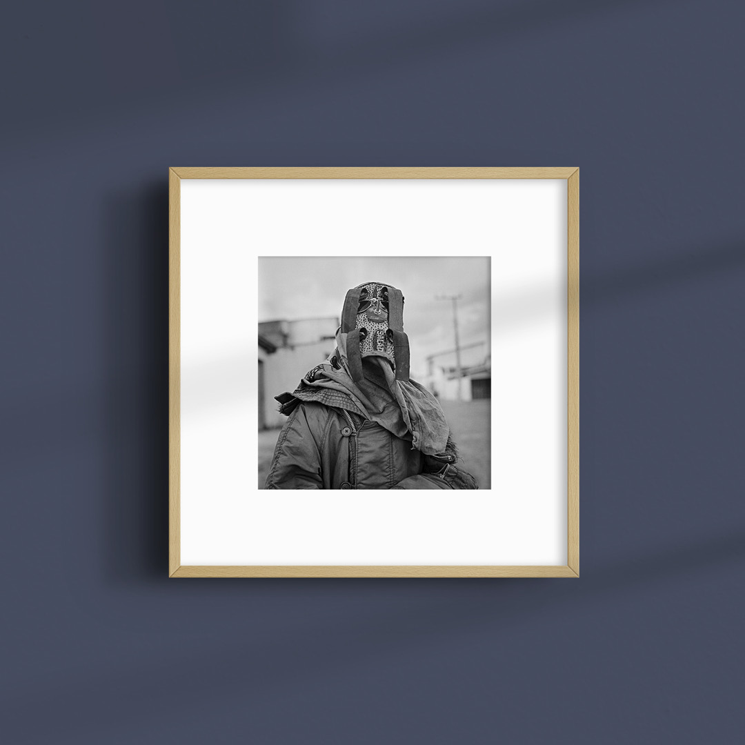This portrait is a study in texture and contrast. The use of Kodak Tri-X film emphasizes the grit and soul of the “Careta” attire, while the Hahnemühle Bamboo Gloss Baryta paper provides deep, archival blacks and an elegant luster. It is a piece that honors the dignity of the subject through the rigor of medium format film photography.